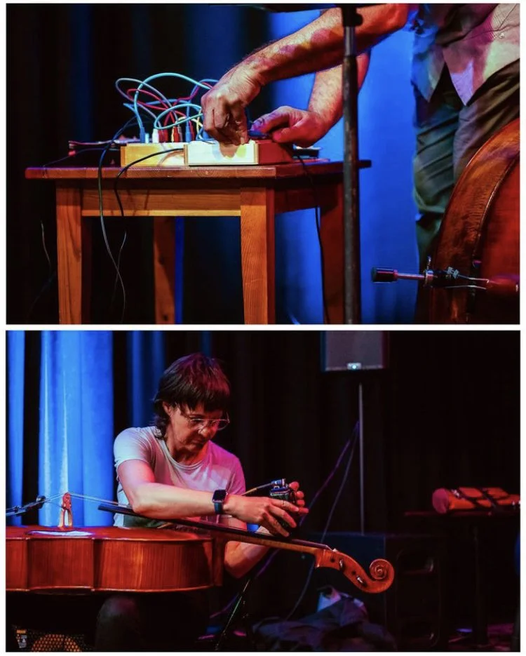 This project combines acoustic and electronic sounds to invert the relationship between composed and improvised material - we play improvised music, and when, or if the moments arise, we perform from a book of original chamber compositions with treatments fully subject to the atmosphere of the moment.